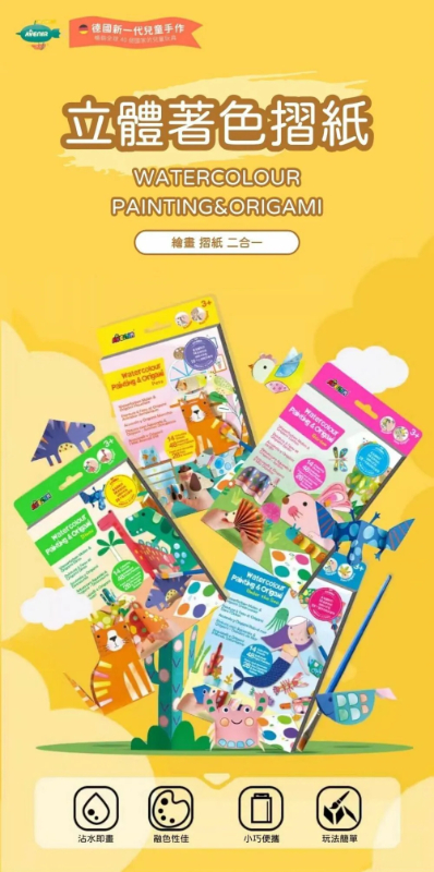 🔹內容物:1支畫筆、28張主題折紙、8色畫版