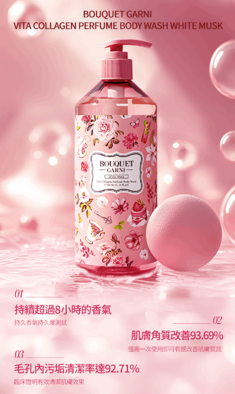 🔹主要成份:Water, Sodium Laureth Sulfate, Lauramide DEA, Cocamidopropyl Betaine, Fragrance, Sodium Chloride, Phenoxyethanol, Citric Acid, Disodium EDTA, Hydrolyzed Collagen, 1,2-Hexanediol, Nelumbo Nucifera Leaf Extract, Nelumbo Nucifera Seed Extract, Nelumbo Nucifera Root Extract, Nelumbo Nucifera Flower Extract, Pyridoxine HCl, Folic Acid, Panthenol, Thiamine HCl, Tocopherol, Ascorbic Acid, Sodium Ascorbyl Phosphate, Cyanocobalamin, Beta-Carotene, Biotin, Riboflavin, Linoleic Acid, Niacinamide, Limonene