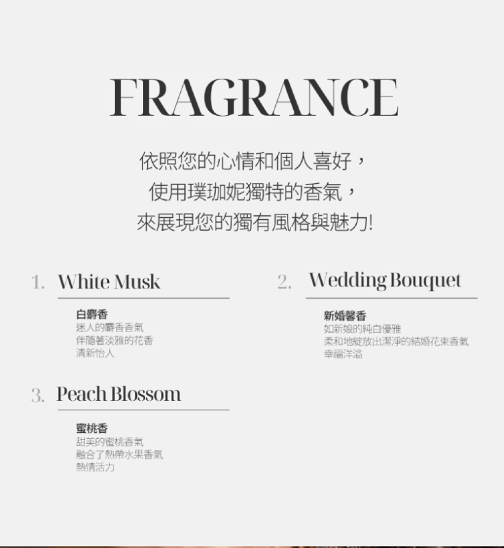 🌟我們選用經國際香料協會(IFRA)認證的高級香料,經過測試為低致敏,溫和不刺激,確保每一款產品都符合最嚴格的安全標準。