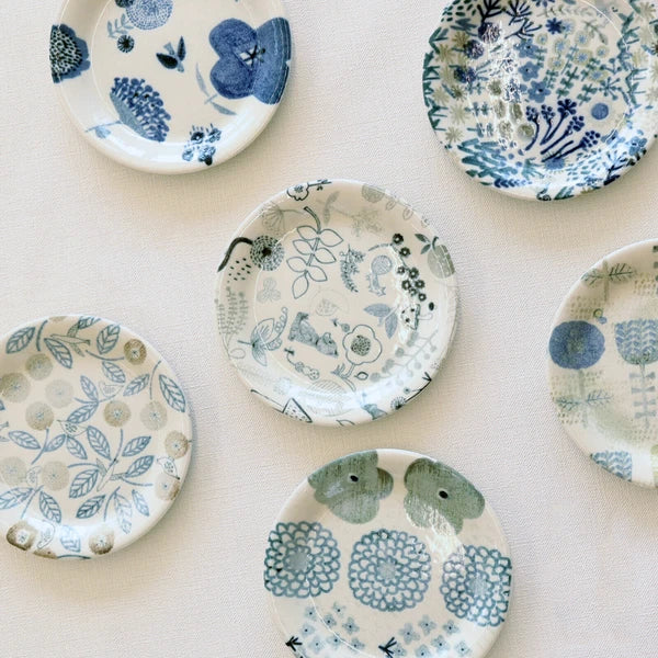 精緻的餐盤上描繪著可愛的生物和花朵。